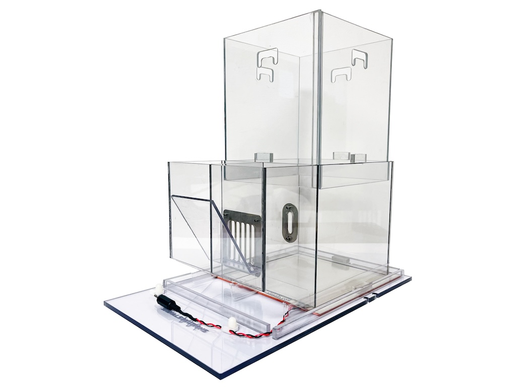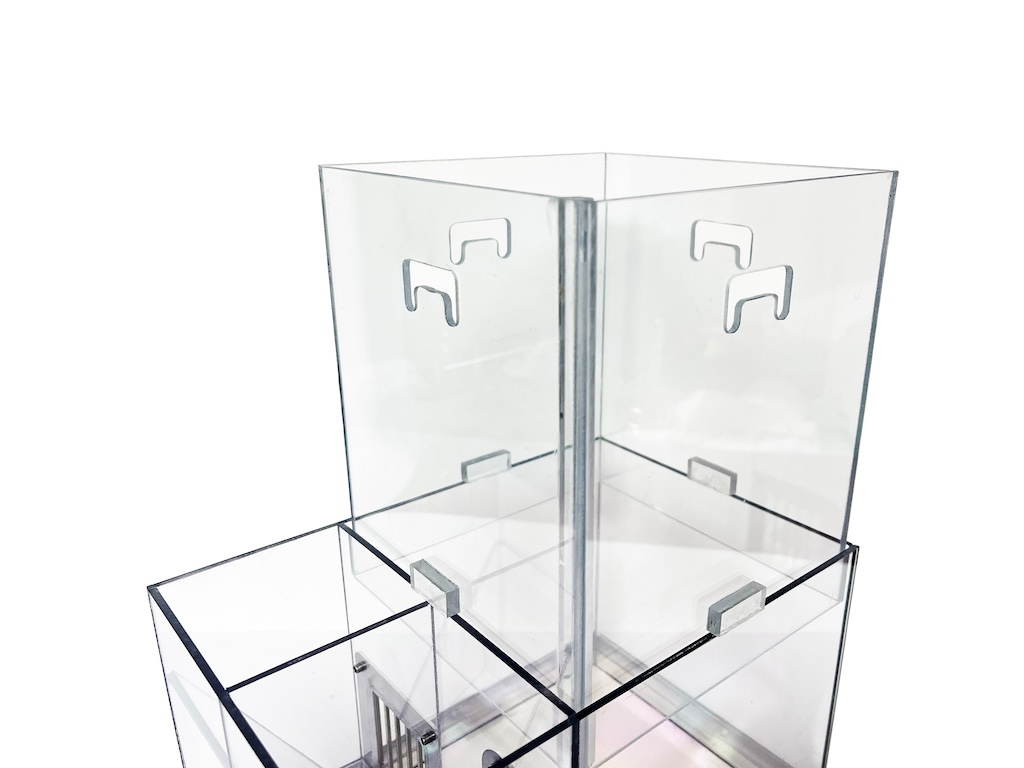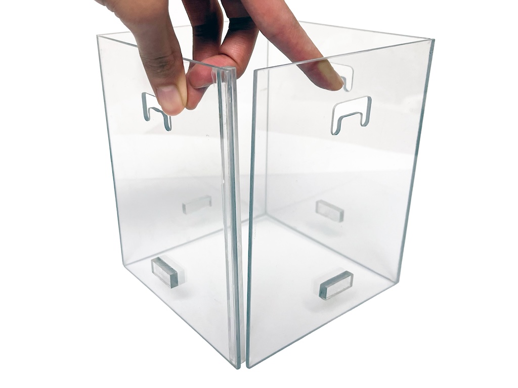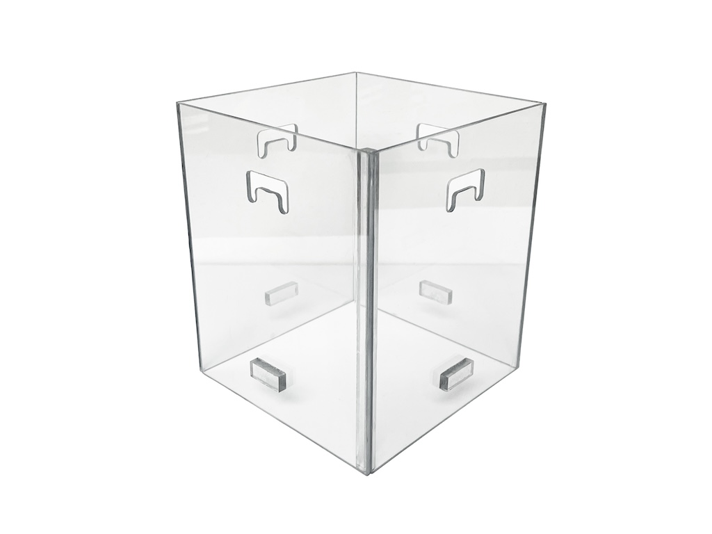 The cage wall extenders replace the cage lid to allow an open-top cage configuration. The unglued edge allows for installation with a tether in place. An optional top cover is available.