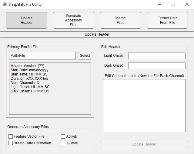 The SleepStats File Utility (SSUtilities) allows users to edit files created by the PiezoSleep systems. Using this tool, you will be able to do the following: